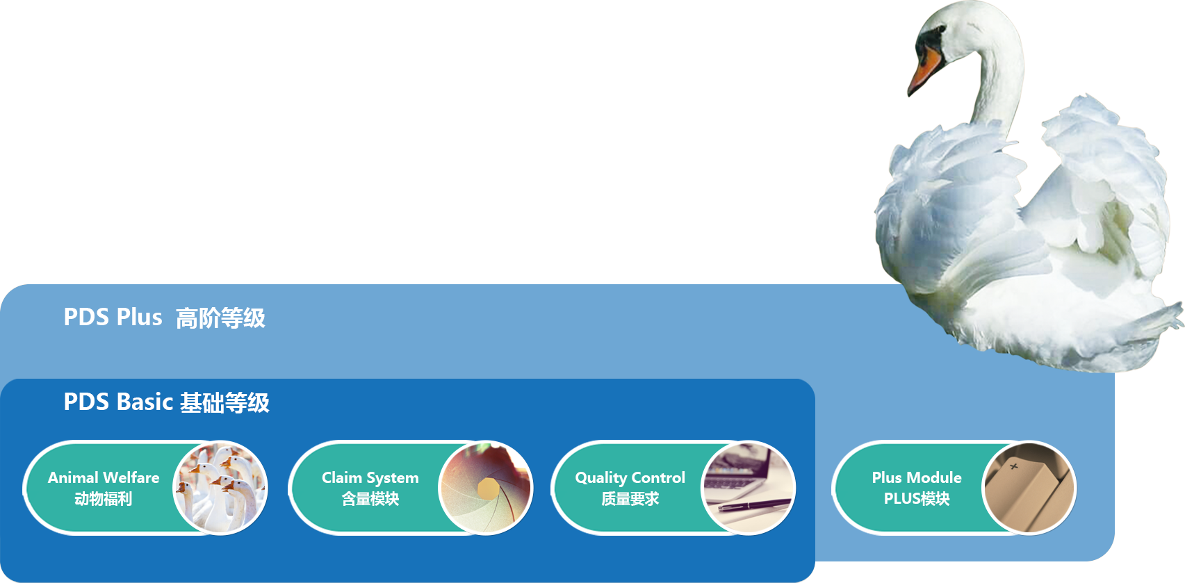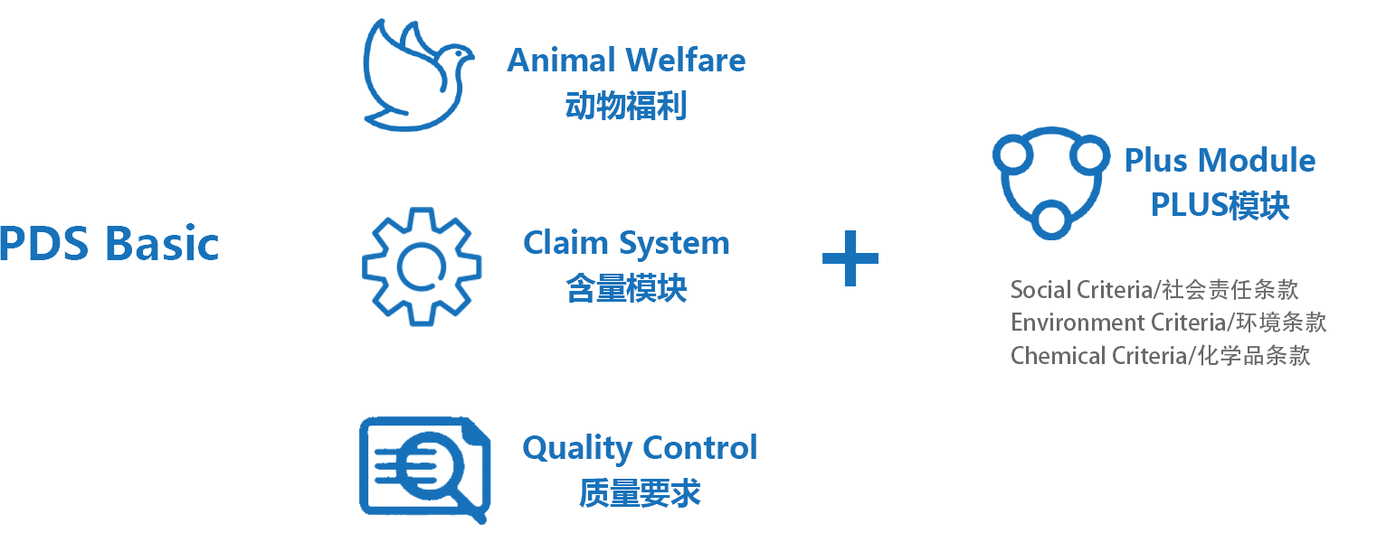 PDS is divided into two tiers: the PDS Basic tier, which primarily covers three core areas—Animal Welfare, Claim System, and Quality Control;